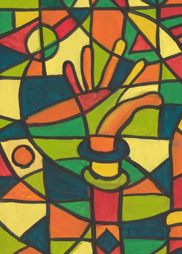 This painting is an invitation to feel the joyous pulse and to let the warm, energizing colors resonate within the walls of your home, infusing it with a soulful cadence.