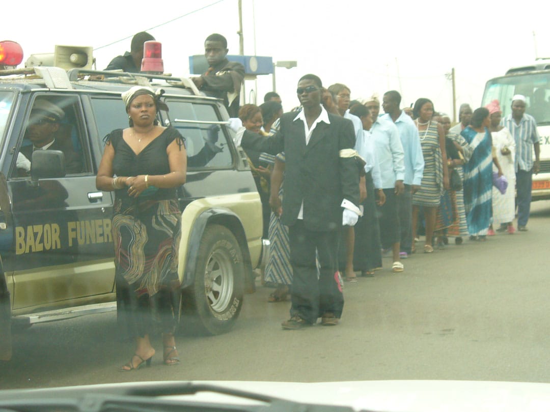 We encounter a solemn funeral procession coming the other direction. It must have been somebody important to this community. In the distance, I thought it looked like a marching band. Turns out it was both.